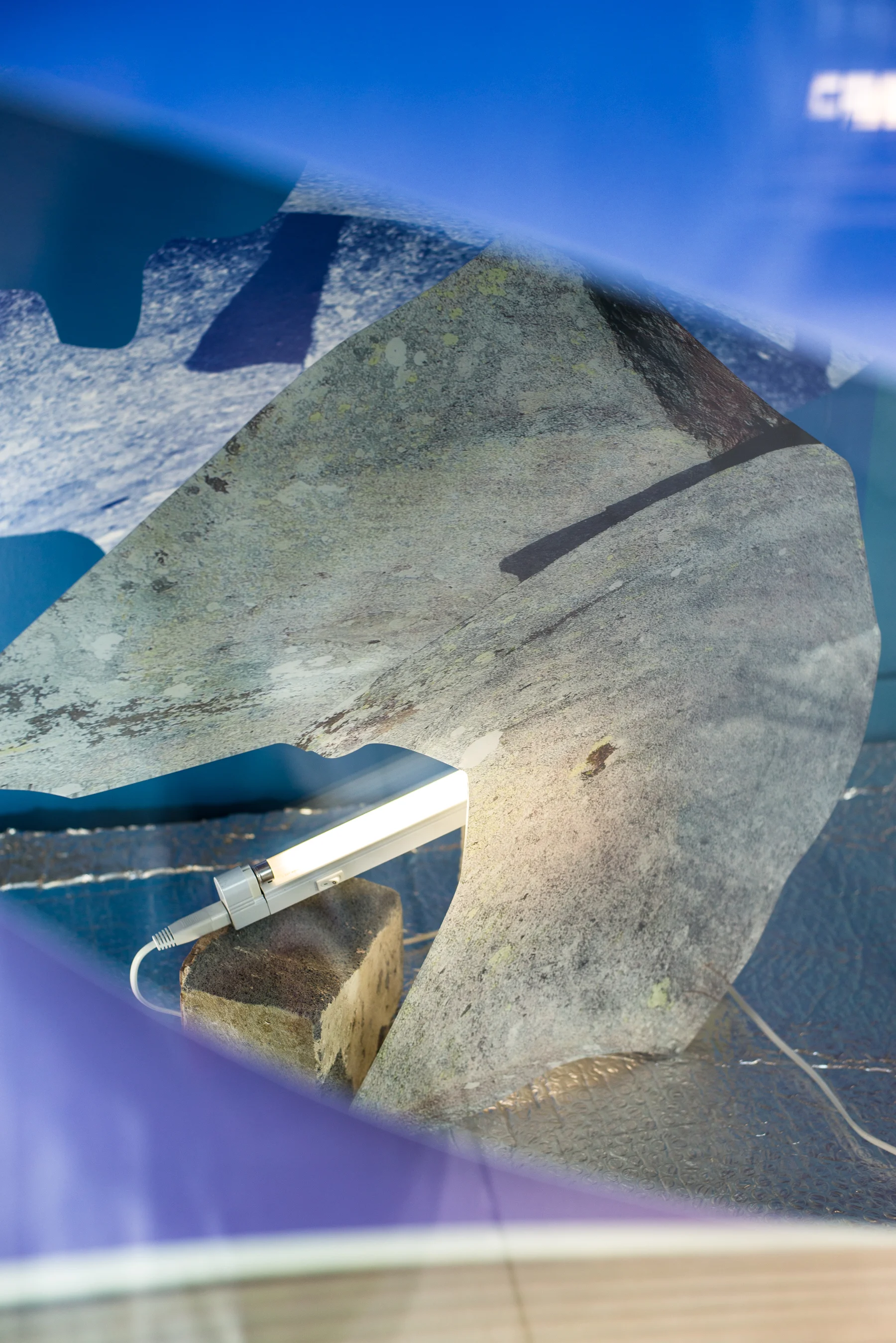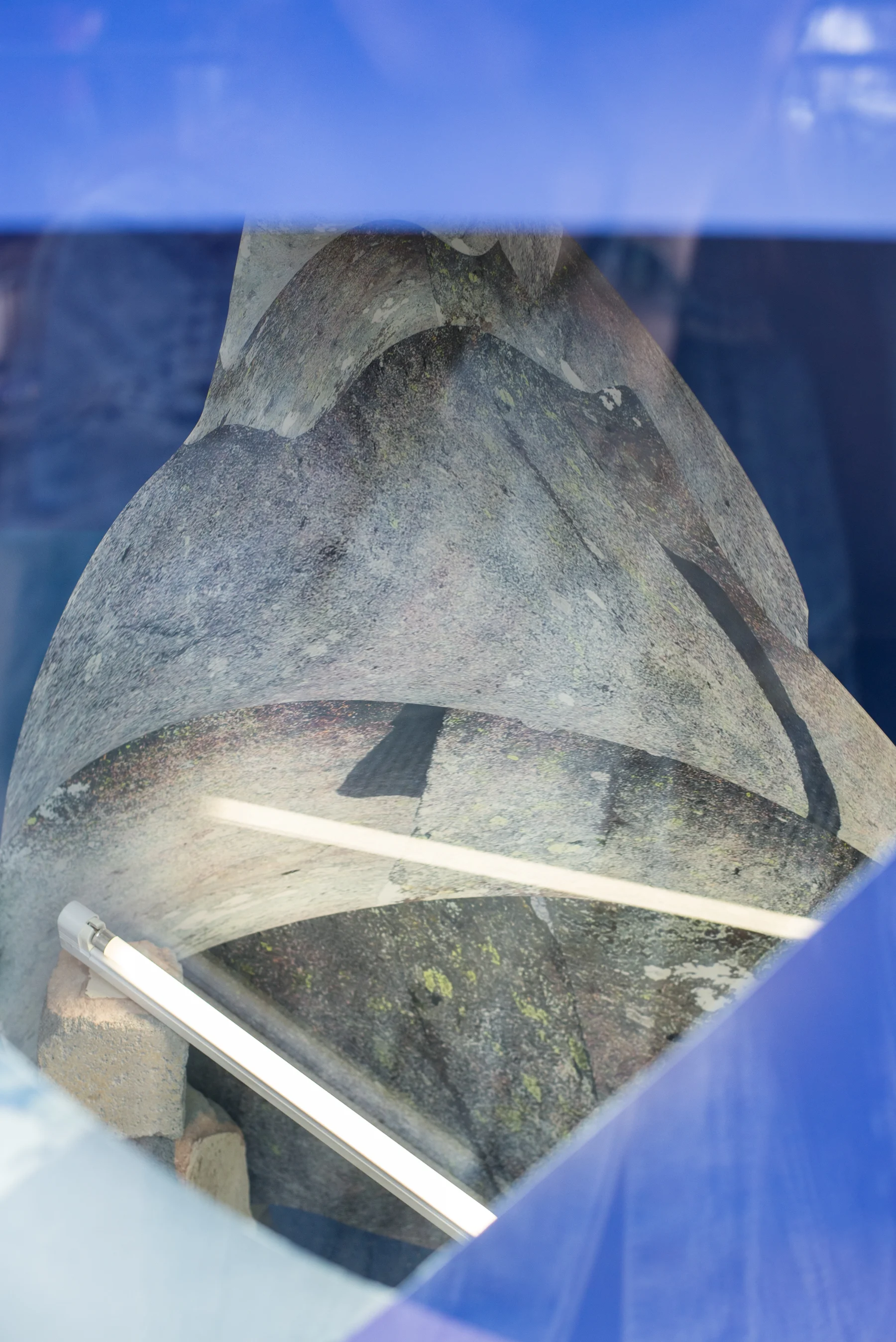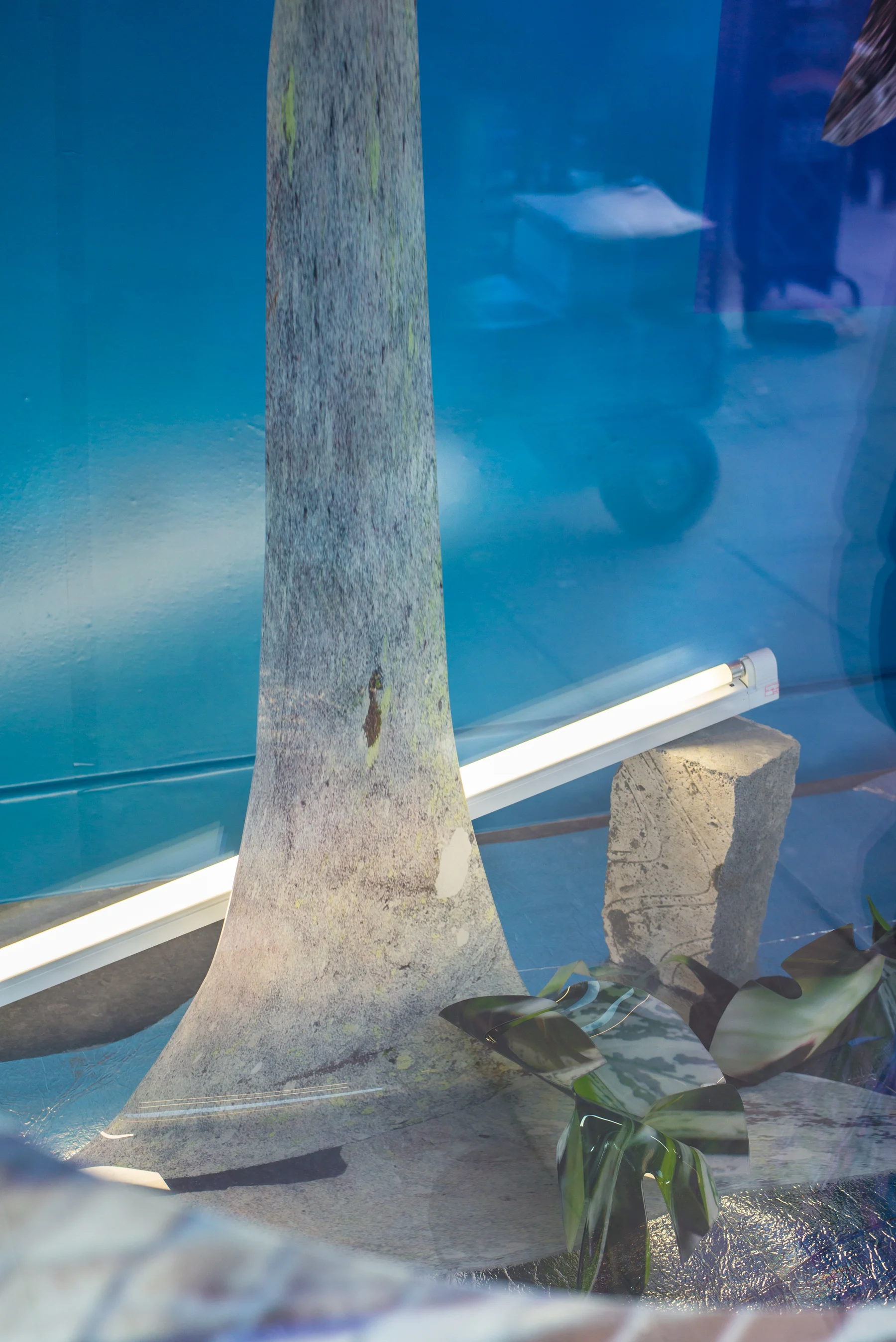 Vinyl banners, Inkjet prints on acrylic, concrete, strip lights, thermal insulation