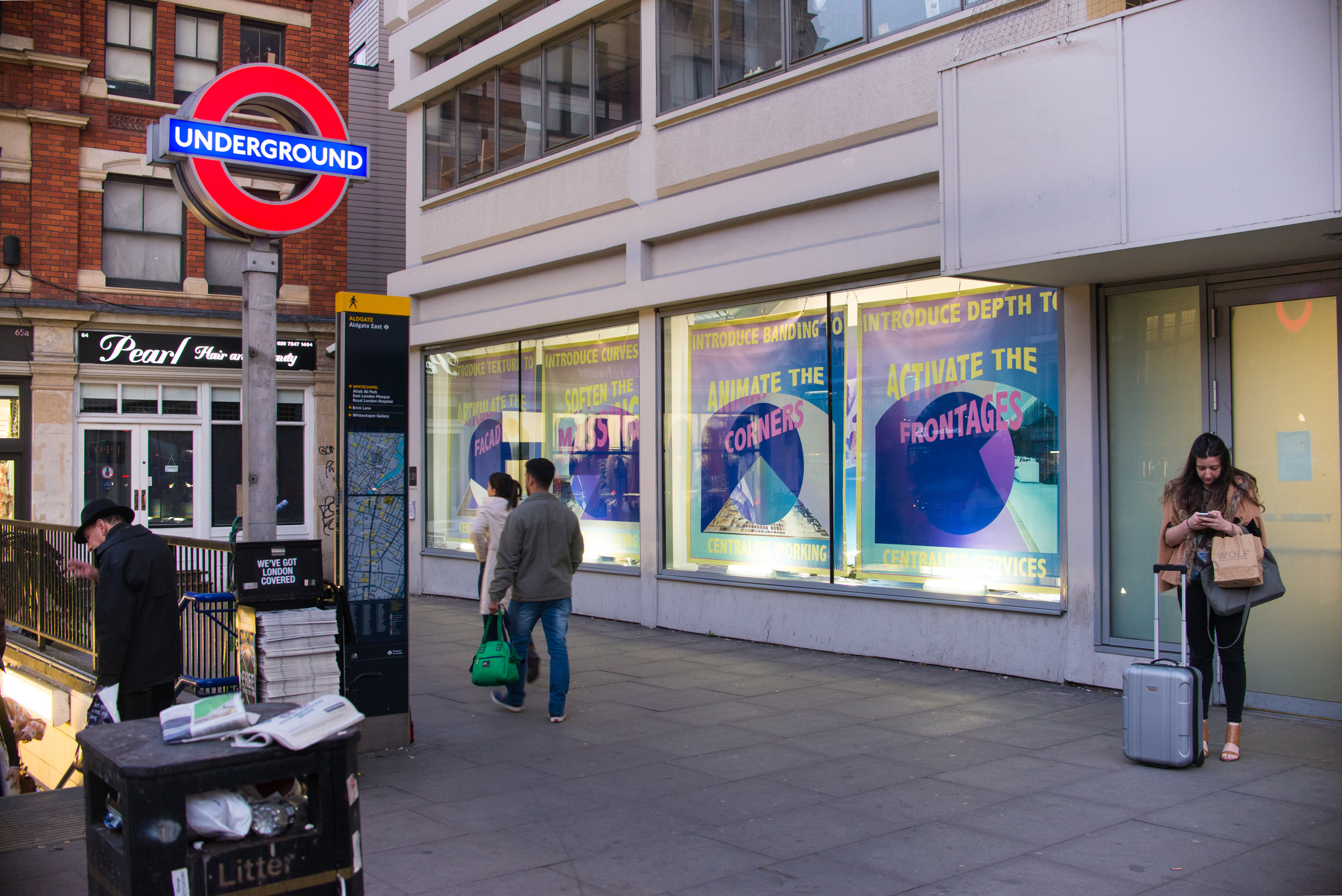 For the third show commissioned by onepointfiveone at Window Space, this work shows a site specific installation which uses fragmented language taken from the developer’s plans for Central House. Their designs have not yet been released, just curious suggestions such as; to soften the massing, to activate the frontages, and to articulate the façade, can be found in their plans for the soon to be unoccupied Cass School of Art.